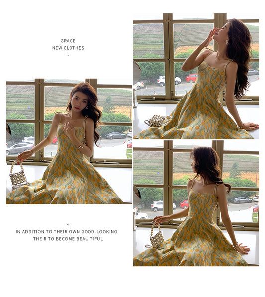 Fresh And Sweet Floral Splicing Travel Print Dress